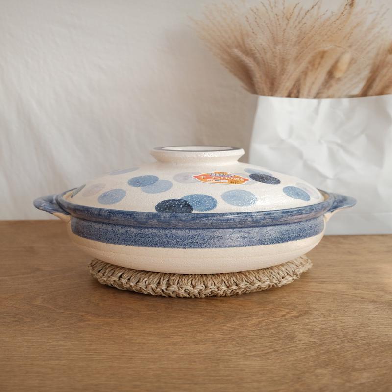 Donabe Banko Ware No.8 Blue Dot Clay Pot