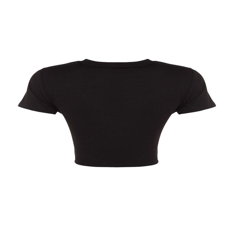 The product in the image is size S/36.; 95% Cotton, 5% Elastane, Knitted Fabric; Crop Pattern: Short, plain and basic pattern has a different stance on every outfit. While this stance both affects the outfit positively, it also emphasizes the body measurements of the wearer. It is mostly combined with a high waist bottom group.; Product Length: 40 cm; Colors may vary in studio shots due to the difference in light.